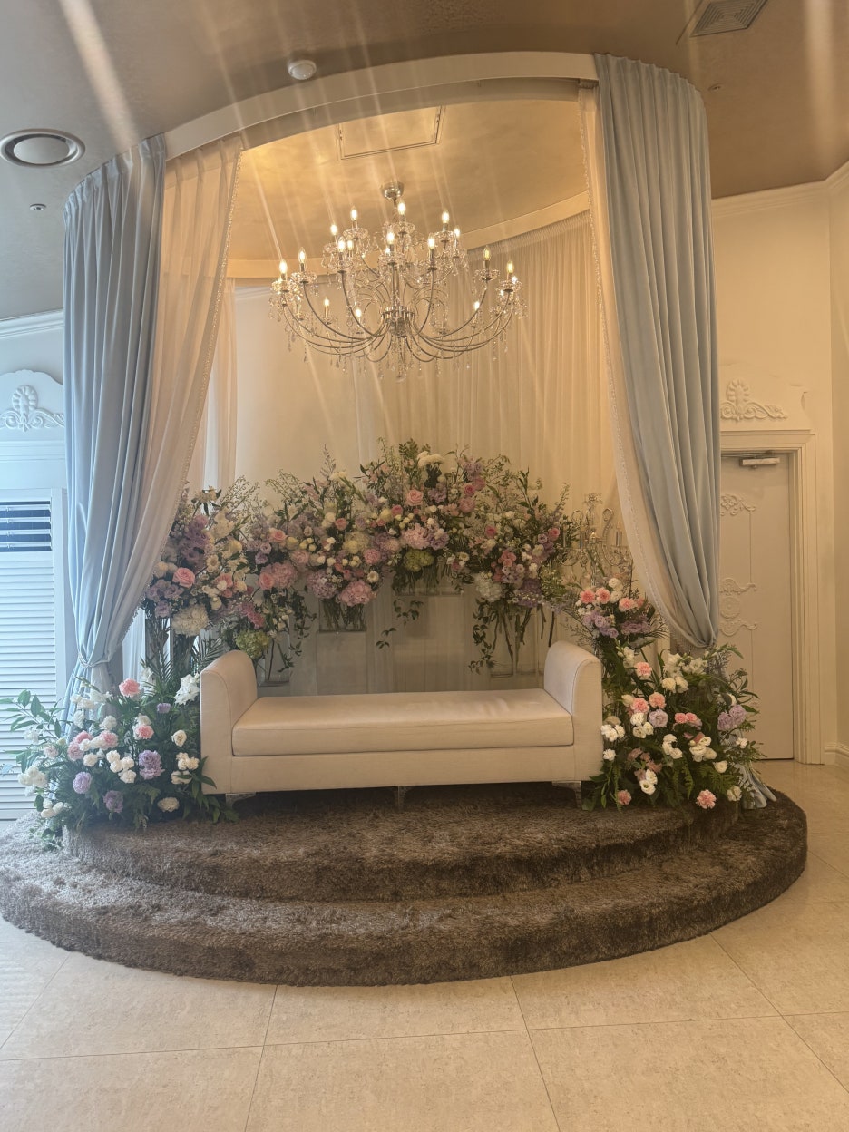 위 사진은 버진로드인데, 카펫이 짙은 보라색이라 신부의 점수를 얻었습니다 ㅎㅎ